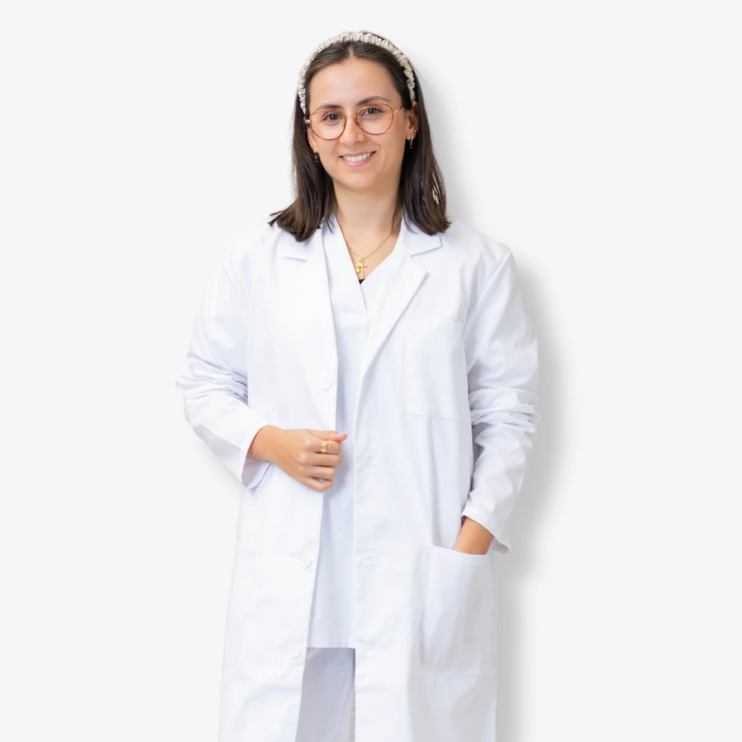 La bata de médico está confeccionada para ofrecer una funcionalidad máxima durante la práctica clínica diaria. Su diseño incluye varios bolsillos espaciosos, tanto en el pecho como en los laterales, permitiendo llevar siempre a mano bolígrafos, herramientas de diagnóstico, un teléfono móvil e incluso un estetoscopio, facilitando la organización y accesibilidad de objetos esenciales.